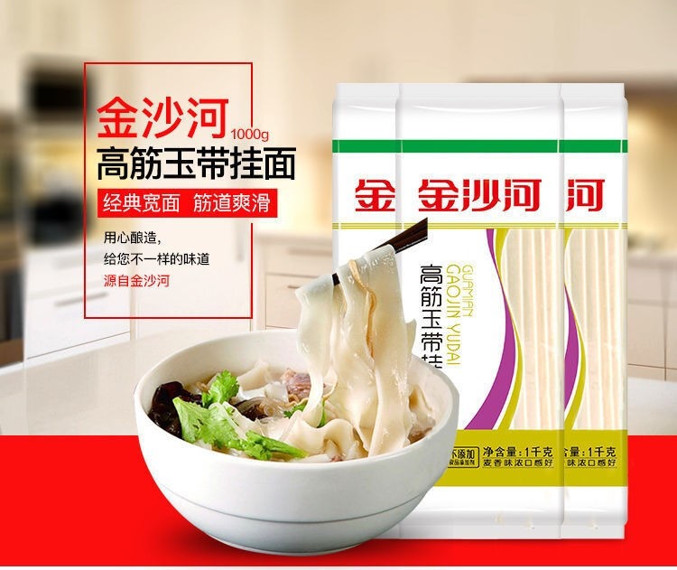商品名称:金沙河 高筋玉带挂面 1kg*3包