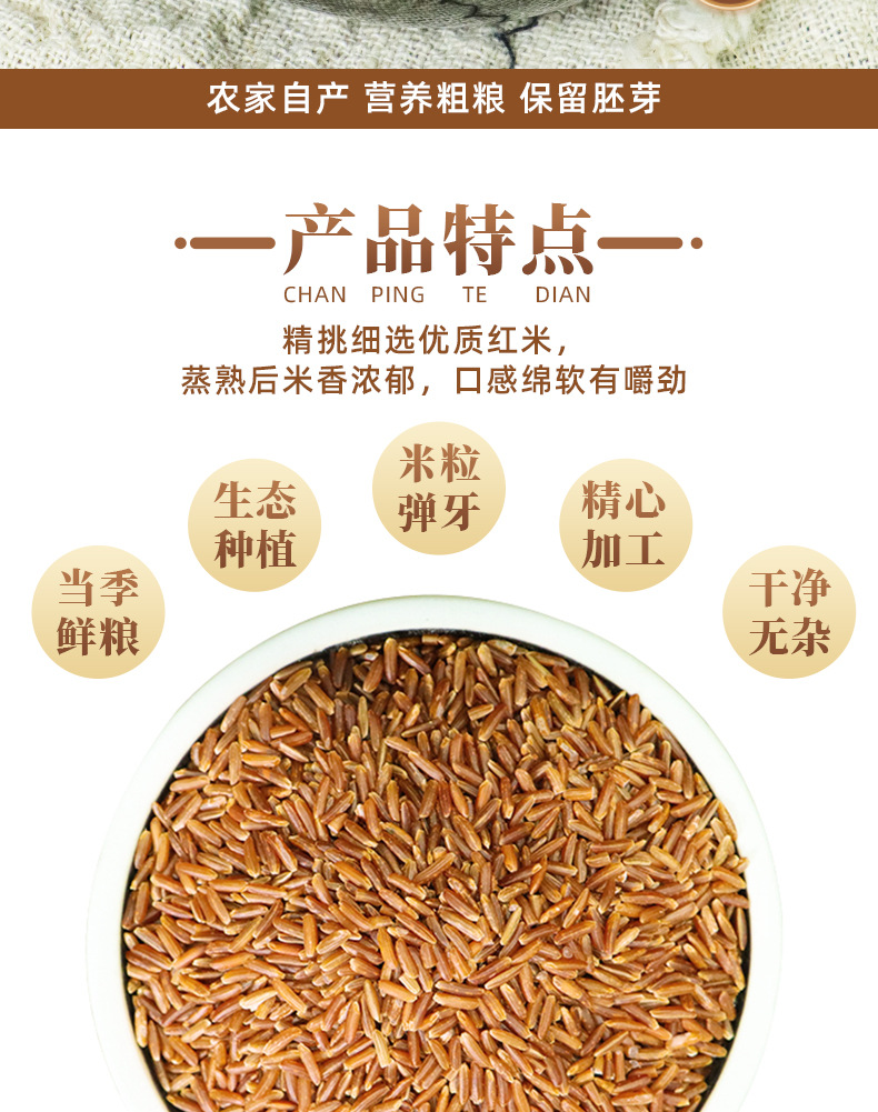 商品名称:新米红米杂粮真空装煮粥糙米饭农家自产低脂健身红大米红糙米