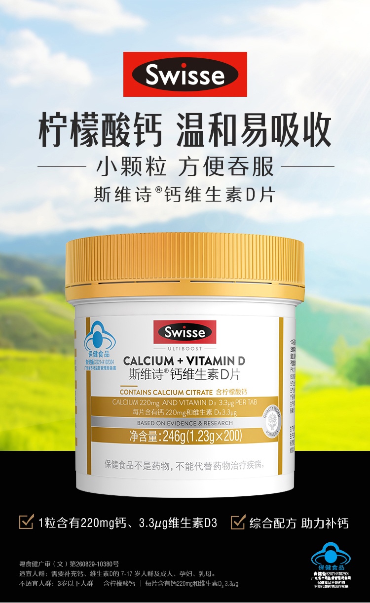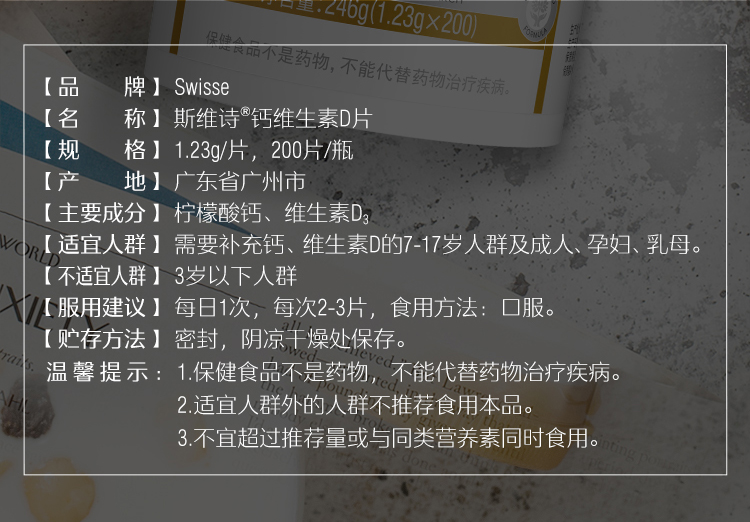 商品名称:斯维诗国产斯维诗钙维生素D片200片