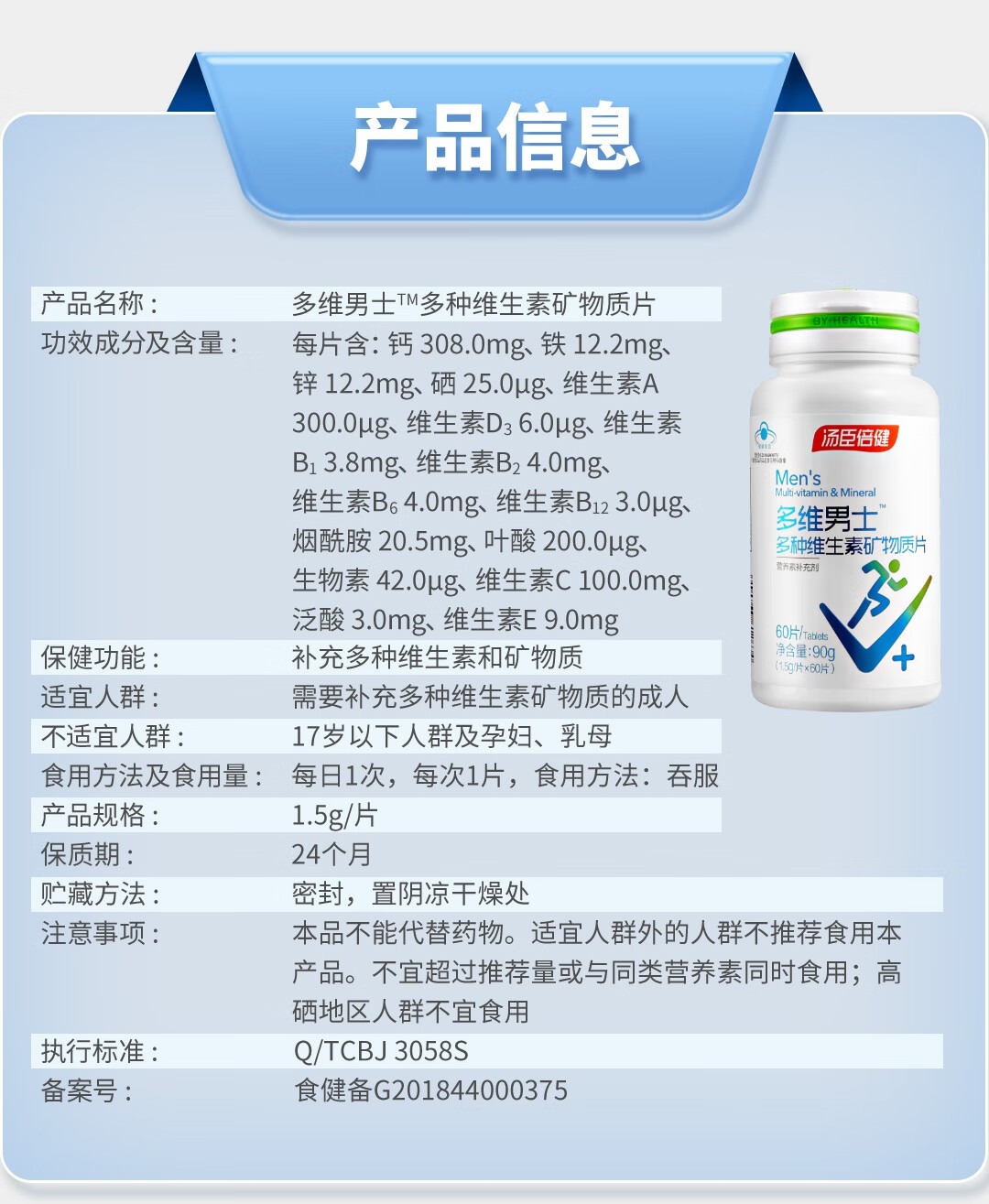 商品名称:汤臣倍健多维男士多种维生素矿物质片60片*2瓶