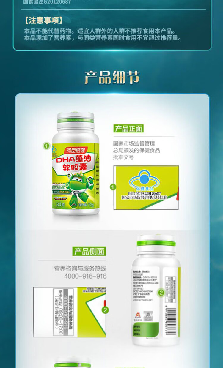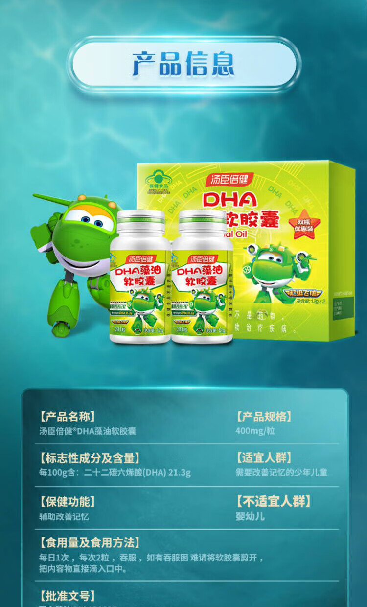 商品名称:汤臣倍健DHA藻油软胶囊30粒*2瓶