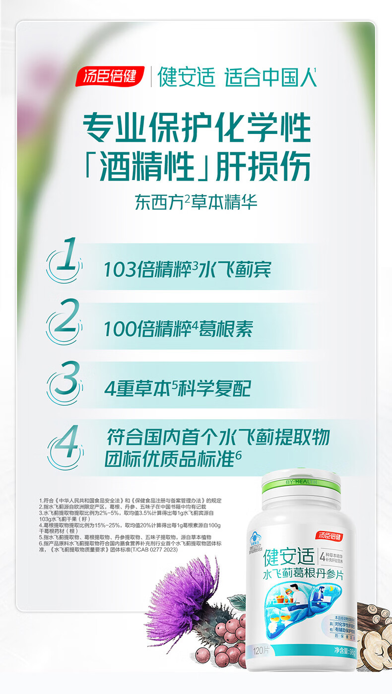 商品名称:汤臣倍健健安适水飞蓟葛根丹参片盒装(1.02g*120片)