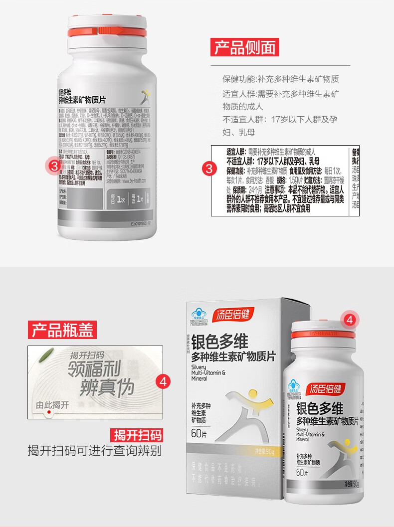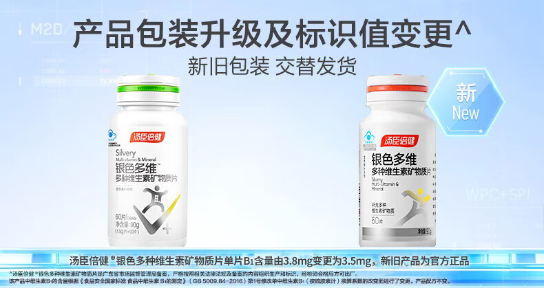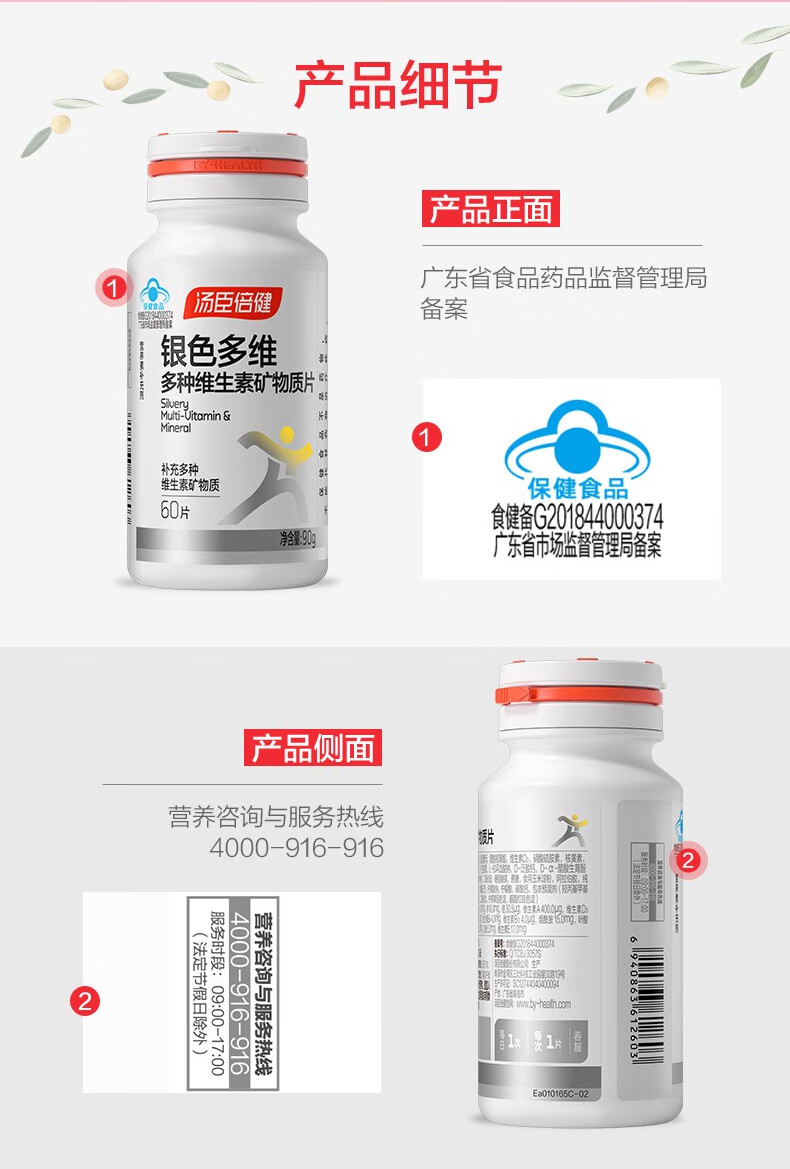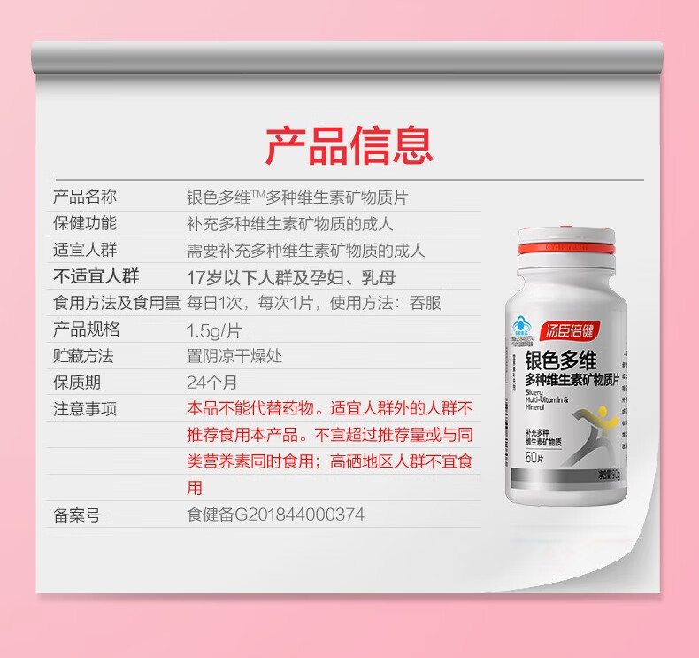 商品名称:汤臣倍健银色多维多种维生素矿物质片60片*2