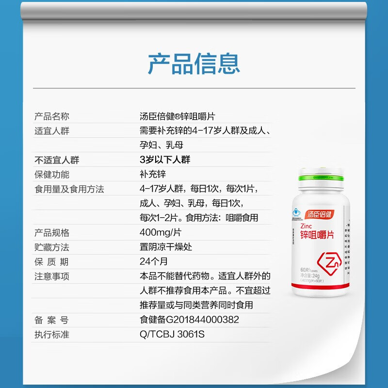 汤臣倍健锌咀嚼片超级飞侠装(60片)